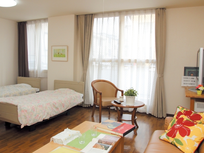| 居室設備 | トイレ、洗面台、暖房、電動ベッド、照明、ナースコール、ヘルパーコール、スプリンクラー、カーテン、テレビ端子、電話端子、BS・CS |